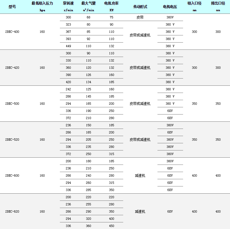 2BEC系列水環真空泵及壓縮機(瓦斯抽放泵),是我公司在多年科研成果和生產經驗的基礎上,結合國際同類產品先進技術,研制開發的高效節能產品,通常用于抽吸不含固體顆粒,不溶于水,無腐蝕性的氣體,以便在密閉容器中形成真空和壓力。通過改變結構材料,亦可用于抽吸腐蝕氣體或以腐蝕液體做工作液。廣泛用于造紙、化工、石化、輕工、制藥、食品、建材、電器、洗煤、選礦、化肥等行業。在煤炭行業尤其可抽放高度易燃易爆氣體,如瓦斯、甲烷,可設計安裝地面瓦斯抽放站,可配套移動瓦斯抽放系統。 本系列泵采用單級單作用的結構形式,具有結構簡單、維修方便、運行可靠、高效節能的優點,并能適應排水量大,載荷沖擊波等惡劣工況。 我們對關鍵部件,如分配板,葉輪和泵軸進行了系統優化設計,簡化了結構,提高了性能,實現節能。采用焊接葉輪,葉片一次沖壓、成型、型線合理;輪轂全部加工,從根本上解決了動平衡問題。葉輪與泵軸采用熱裝過盈配合,性能可靠,運轉平穩。葉輪焊接后,整體進行良好的熱處理,葉片具有良蟲子的韌性,使葉片的抗沖擊,抗折彎能力得以根本保證,能適應載荷沖擊波的惡劣工況。
